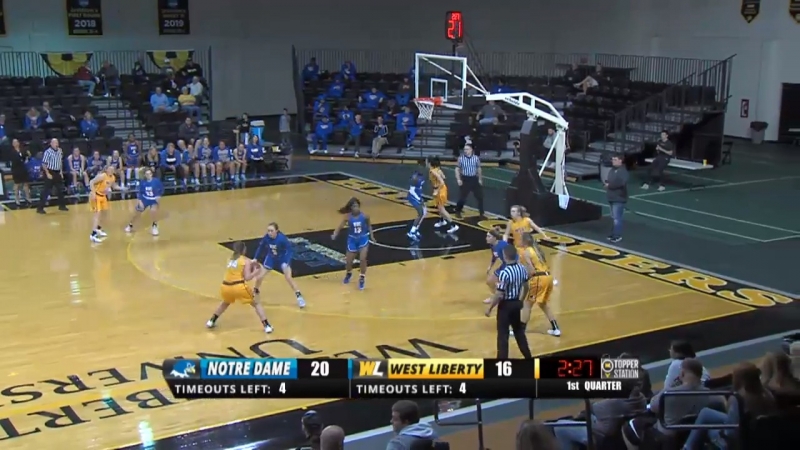 Women's Basketball - WLU vs Notre Dame- November 26, 2019 - WLU's Jackie Kitts gets the rebound and the buzzer beater to end the 1st Half- WLU Morgan Brunner says "You want to block my pass? Block this!"
